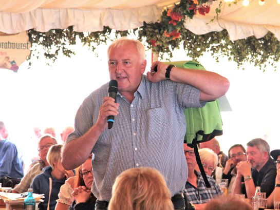Über 400 Mitgliederinnen und Mitglieder der Eisenbahn- und Verkehrsgewerkschaft EVG besuchten den EVG-Eisenbahnertag auf dem Nürnberger Volksfest. Der Bayerische Verkehrsminister Dr. Hans Reichhart (CSU) war zu Gast. Mittendrin mobifair mit einem „Rucksack voller Sozialstandards“, der dem Minister übergeben wurde. Helmut Diener, Vorsitzender des Vorstands mobifair, benannte die unbefriedigende Ausschreibungspolitik in Bayern als Grund für die Übergabe des symbolischen Geschenkes. „Die Leidtragenden der Vergaben im Schienenpersonennahverkehr SPNV und öffentlichen Personennahverkehr ÖPNV, also Bahn und Bus, sind die Beschäftigten. Die Gewinner sind die Kämmerer“, so Diener in seiner Wortmeldung und betonte weiter, „Man müsse der Arbeit der Busfahrer wieder mehr Respekt zollen und darf sie im Ausschreibungswahn nicht alleine lassen. Das was derzeit stattfindet gleicht eher Arbeitsplatzklau und Lohnraub. Das Gleichgewicht ist weg. Zuviel Entgelt heißt zu teuer, dadurch drohen Leistungs- und Arbeitsplatzverluste. Umgekehrt heißt das, mehr Arbeit für wenig Einkommen. Es ist Unsinn immer mehr die Billigheimer der Branche zu beauftragen, die keinen Wert auf gute Beschäftigungsbedingungen legen. Auch bei der Schiene ist es unerklärlich, dass auf das billigste Angebot gesetzt wird. Denn dadurch verlieren wieder die Kolleginnen und Kollegen, die die Arbeit machen.“ Helmut Diener bekam große Zustimmung aus dem vollen Bierzelt des Lössel-Wirts. „Das muss besser werden, Herr Staatsminister und wir helfen gerne dabei“. Mit diesen Worten übergab er den Rucksack. Der bayerische Verkehrsminister stimmte einem persönlichen Gespräch zu und es wurde ein Treffen im Ministerium vereinbart.